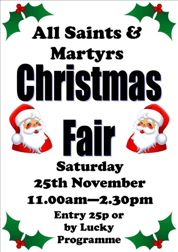 This year’s Christmas Fair will take place on the church hall between 11am – 2.30pm on Saturday 24th Nov.