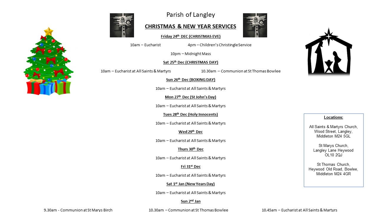 10am – Eucharist at All Saints & Martyrs – 10.30am – Communion at St Thomas Bowlee